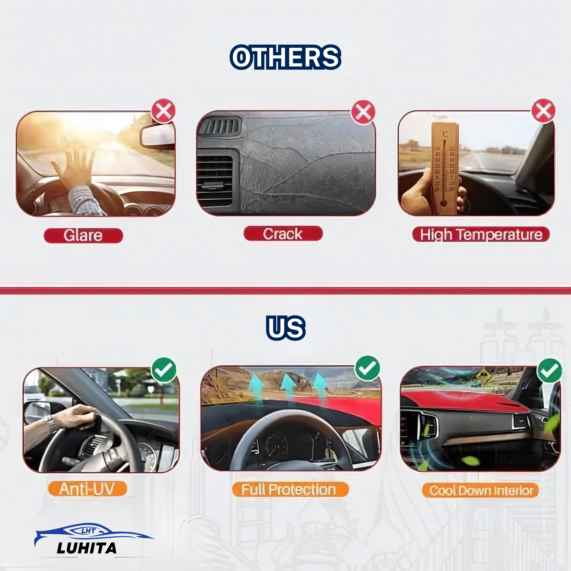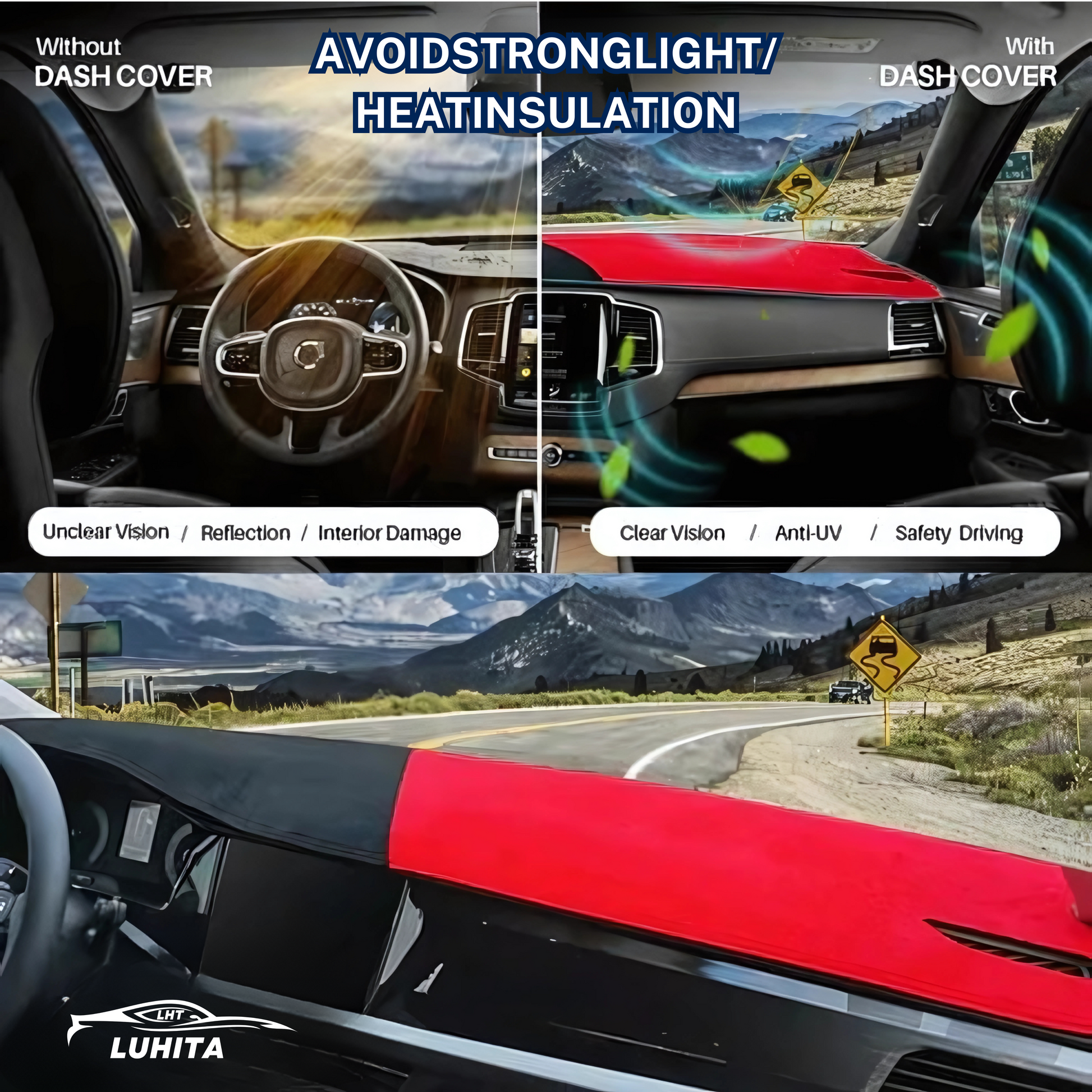 Say goodbye to harsh reflections and distracting glare on your windshield. The Luhita™ Dashboard Mat Cover is specially engineered to absorb light, not reflect it, helping you maintain a clear, undistorted view of the road ahead. Whether you're driving under strong sunlight or through changing light conditions, this simple upgrade brings greater focus, comfort and safety to every journey.