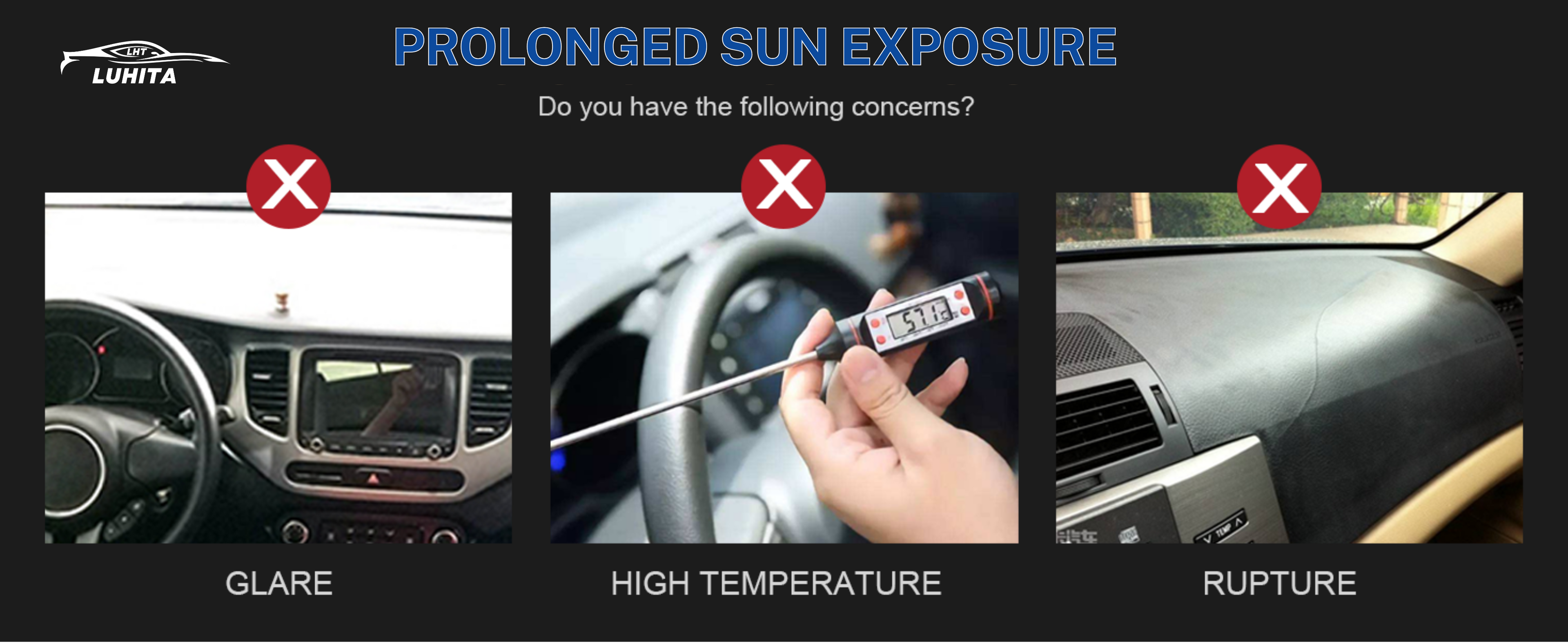 Without protection, dashboards crack under long-term sun exposure and cause harsh glare while driving. The Luhita™ Dashboard Mat Cover solves both problems with advanced heat insulation, glare reduction, and long-lasting material that keeps your dash cool, intact, and your view crystal clear.